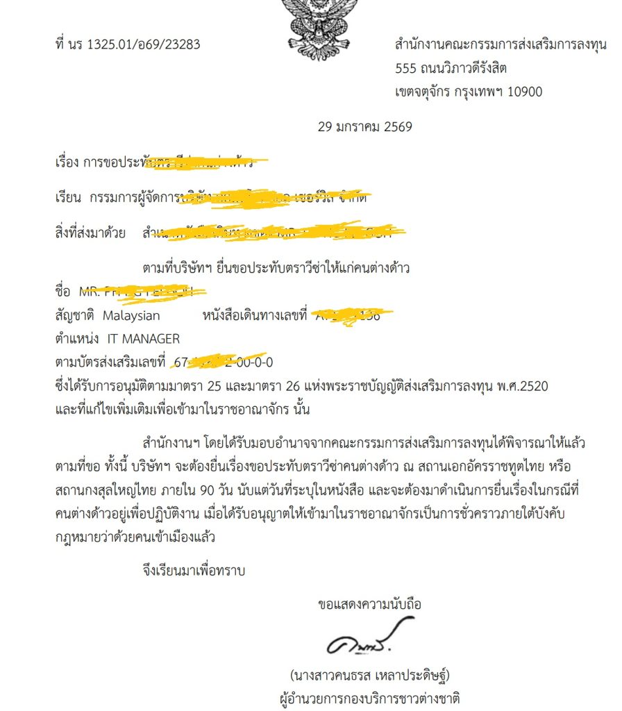 Once you receive this letter, it means that BOI has approved your Visa application. It also means that BOI has approved your company or the company sponsoring you to hire you to work in Thailand. This is a very good news and the rest of the steps are merely procedural.