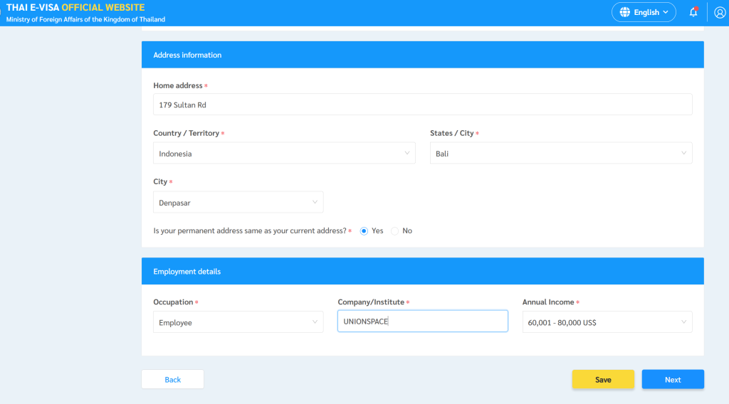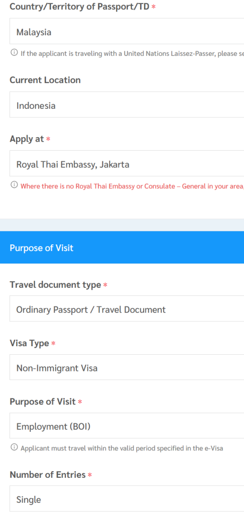 Click NEXT to go to the next page. Set the INTENDED DATE OF ARRIVAL about 10 days from the day of your submission. As for the INTENDED DATE OF DEPARTURE, it means when will you be leaving THAILAND. Set it at approximately 60 days as this Non-B Visa will give you 90 days of stay. Don’t worry abou this because once you arrive Thailand, you will need to process your WORK PERMIT and at the same time OBTAIN a new NON-B Visa for 1 year.