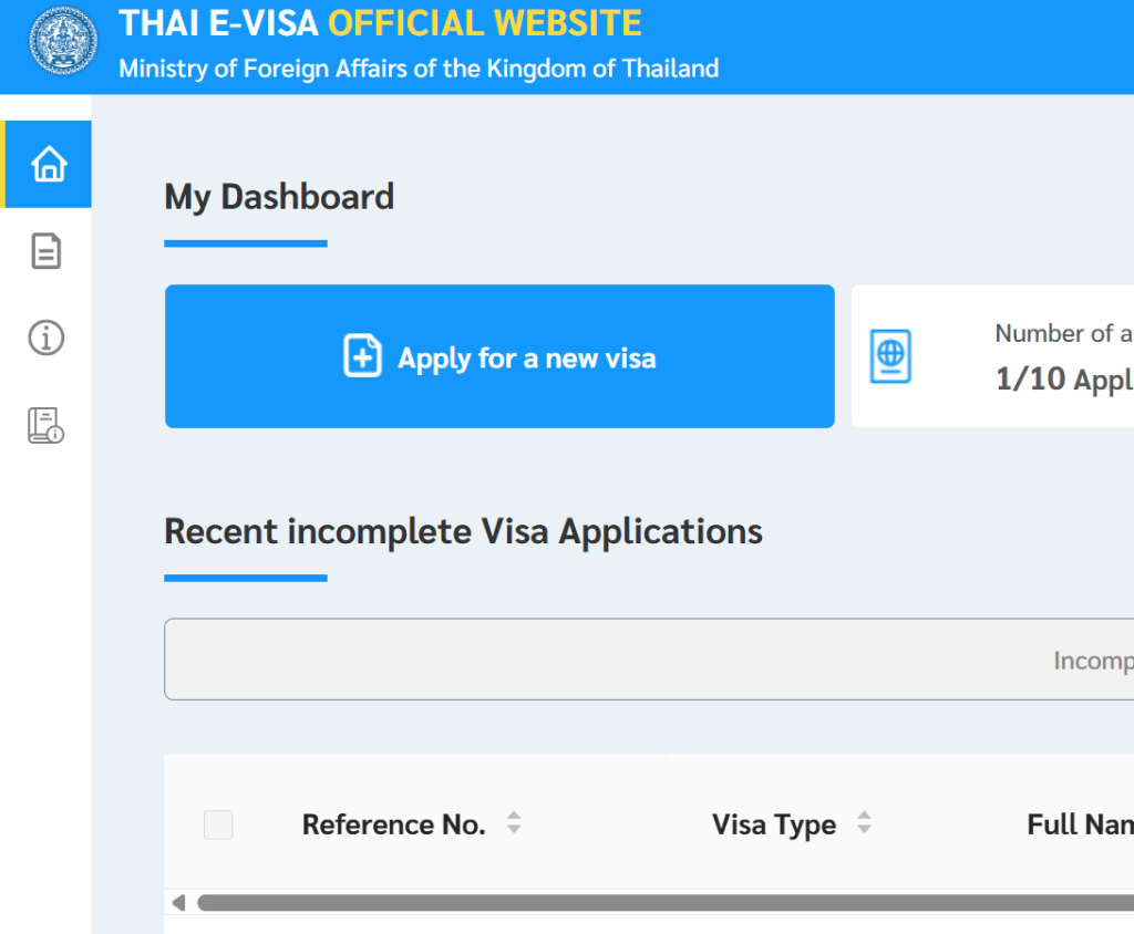 How to apply? Go to https://thaievisa.go.th/ and create an account if you don’t have one. Log into the portal and click on the APPLY FOR NEW VISA button