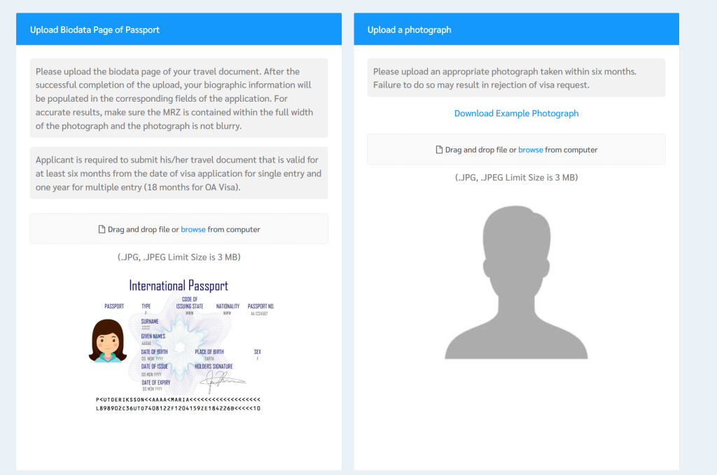 On the next screen, you need to upload your passport and your own photo. Important tip: When your use your phone to take the photo of your passport, make sure your fingers are not seen holding the passport page open otherwise you will neede to resubmit.